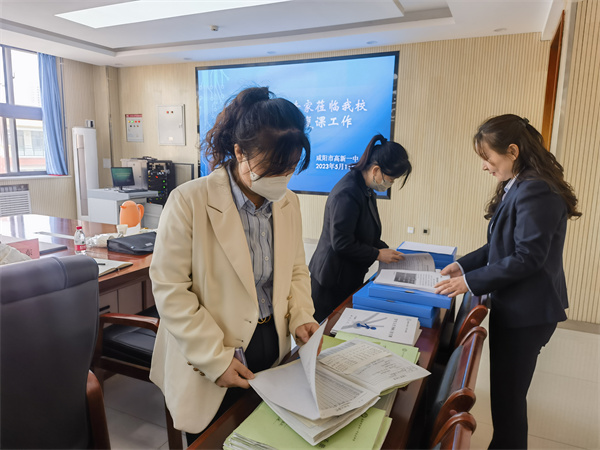 为了进一步做好2023年中考复课备考工作,努力提高中考复课教学的针对性和实效性,5月11日上午,秦都区教育局教研室副主任于海玲一行6人莅临咸阳市高新一中视导2023届中考复课备考工作。学校党总支书记、校长于建营,副校长杨东陪同。