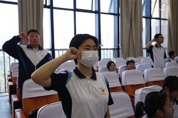 新入团的共青团员庄严宣誓,志愿加入中国共青团,并承诺以青春之力为祖国建设和发展贡献自己的力量。他们面对团旗,右手持拳肃立,庄重宣誓,声音洪亮有力。