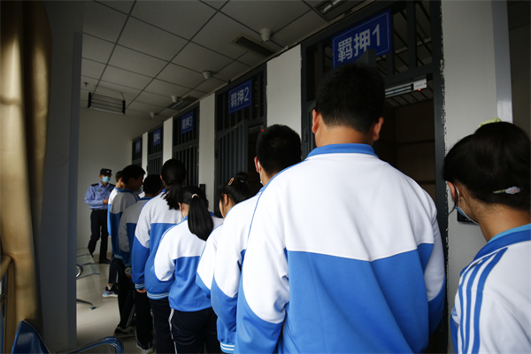 下午4点,同学们乘车来到秦都区人民法院,在咸阳市高新一中法制副校长林丽丽引导下参观了诉讼服务中心、法律文化走廊、羁押室等,让大家对法院工作有了更加直观的感受。