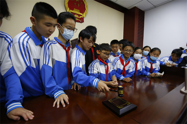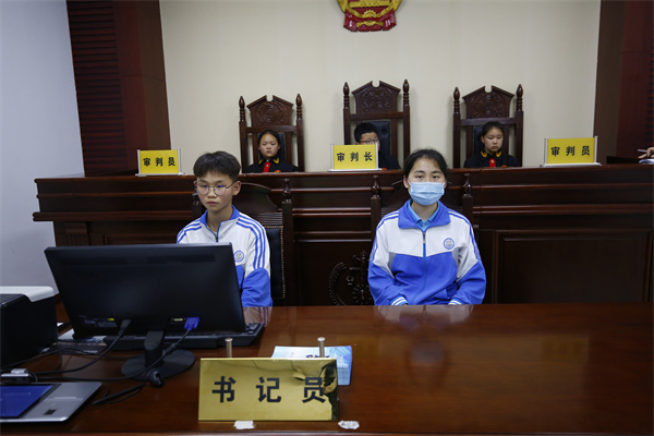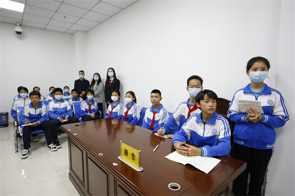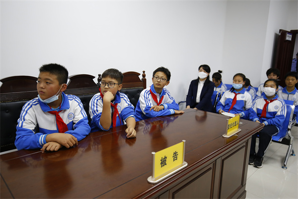 随后,大家一同走进少年法庭,亲身体验了审判长、审判员、书记员、原告、被告等角色,了解了法院的工作机制与流程,感受到了法院的庄重与严肃。林丽丽就未成年人当中出现的打架斗殴、校园欺凌、绑架滋事等不良事件对学生们进行教育,希望学生们有“法网恢恢,疏而不漏”的意识,完全摒弃不良行为,学会保护自己的身心健康,成为一个不危害社会的人,长大后为国家、为社会做出一定的贡献。