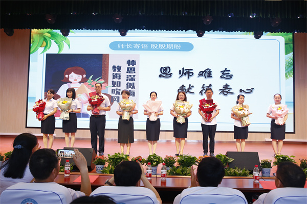 一束束芬芳的鲜花,一段段难忘的时光,一句句真诚的感谢。接下来学生代表为老师献鲜花送祝福,向老师们真诚地道一声:“老师,您辛苦了!”