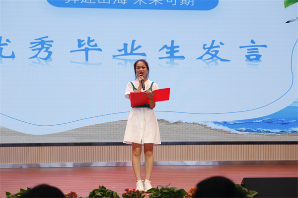 回顾三年的学习生涯,同学们在争辩与磨合中留下了太多值得回忆的情景与往事。当我们走向更广阔的天地时,定不会忘记同窗之情,恩师之爱。九年级毕业班学生代表赵易凡发言,她用朴实的语言细数三年的过往,用深情的语言表达了对老师们的感激之情,并书写了对大家的美好祝愿。