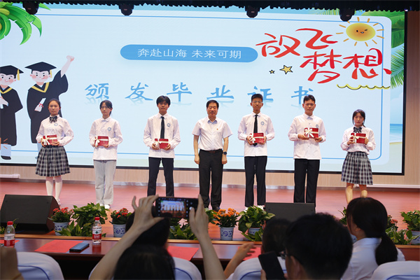 有付出就有回报,离别之际,学校党总支书记、校长于建营为毕业生们颁发毕业证。每一位拿到证书的同学的脸上都洋溢着激动和幸福的微笑。一本小小的证书,凝聚着三年情谊,蕴含着三载难以忘怀的时光!愿他们能够带着这份荣誉继续扬帆起航!