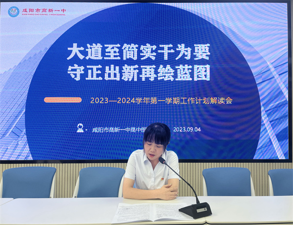 新学期,新征程,为凝聚新力量,奔赴新征程,创出新佳绩,落实新学期工作计划,开好局,起好步,9月4日,咸阳市高新一中高中部召开新学期工作计划解读会。