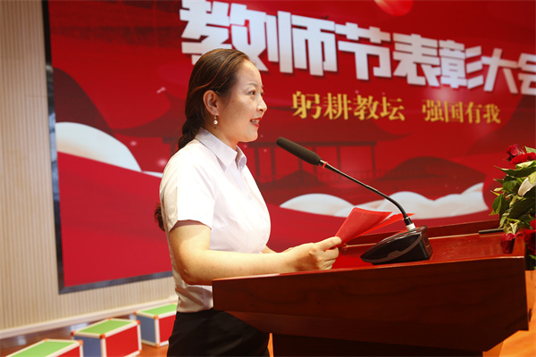 秦都区教育局督导室主任马娟平向全体教师表示感谢和节日问候。希望全体教师在今后的工作中以更加昂扬的斗志,以更加崭新的精神风貌,百尺竿头更进一步,以培养民族复兴大任的时代新人为己任,积极面对未来和挑战,全面强化师德养成,努力为秦都区教育高质量发展贡献力量。