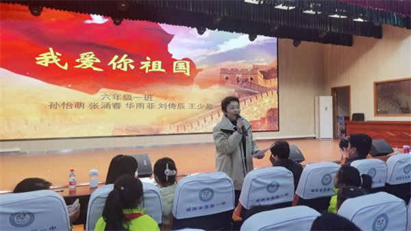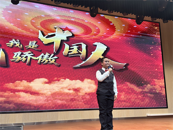 看呀,我们的同学们从容自信的登上舞台,他们饱含激情,用最深情的语言表达着对祖国美好河山的赞美和对祖国深沉的爱!
