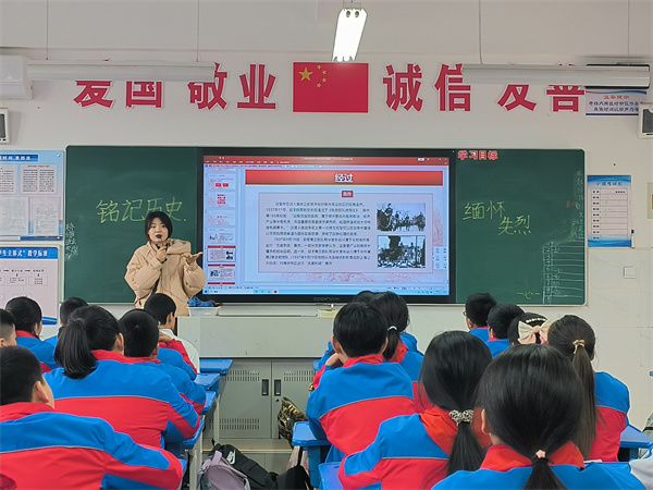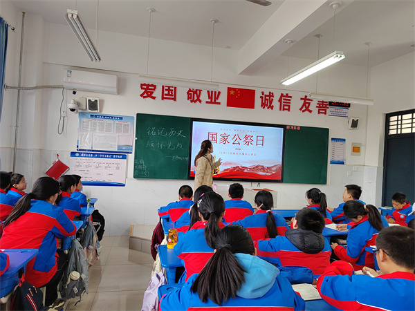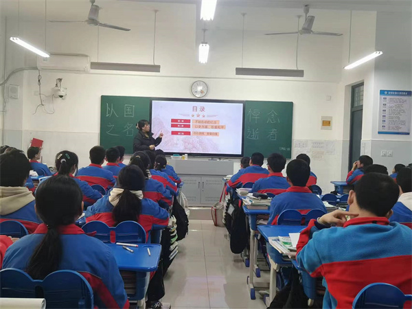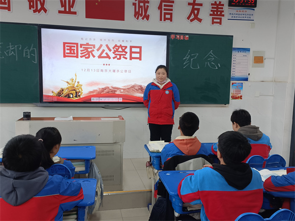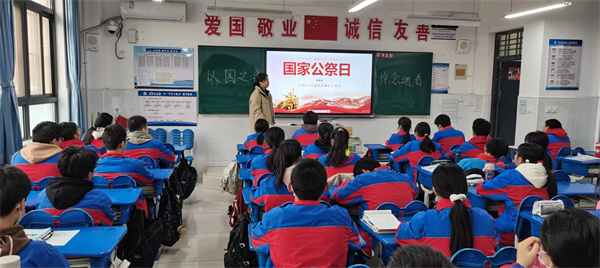 痛史难忘,汲鉴既往。在第十个南京大屠杀死难者国家公祭日来临之际,咸阳市高新一中初中部利用主题德育课开展“忆国殇 强国魂”—南京大屠杀死难者国家公祭日纪念活动。