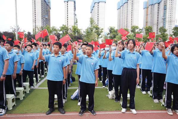 红旗猎猎,红歌飘扬。下午,全体师生齐聚操场,合唱《歌唱祖国》,共同祝愿伟大的祖国繁荣昌盛。
