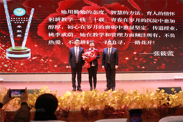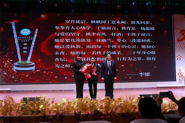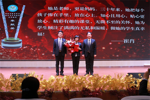 温馨的音乐轻轻响起,每一位老教师走上舞台时,台下掌声如潮。这些耕耘了三十载的教育工作者,他们的脸上写满了岁月的沧桑,而眼中却依然闪烁着对教育事业的执着与热爱。校长于建营、副校长程颖斌、杨东、李江河、廖荣为每位老教师递上象征着荣誉与感激的荣誉证书和奖杯。