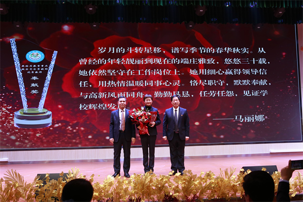 倾尽丹心育桃李,奉献韶华铸师魂。12月29日,咸阳市高新一中隆重举行“从教30年”教师庆典暨迎新年晚会。学校党总支书记、校长于建营,副校长程颖斌、杨东、廖荣、李江河,校长助理王元东、工会主席王中社及全体教师近280余人齐聚一堂,向为教育事业默默奉献三十载的教师们致以崇高的敬意。
