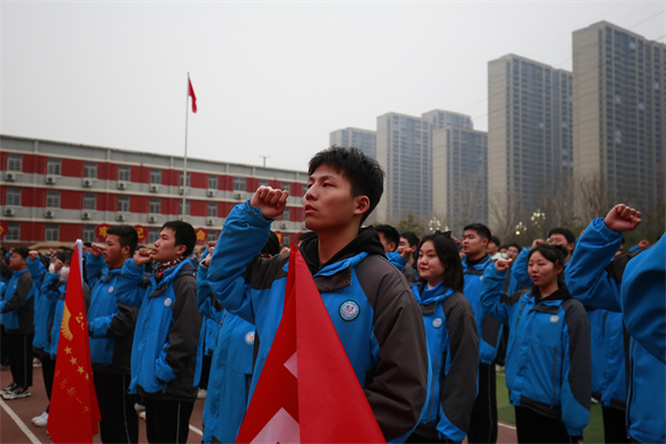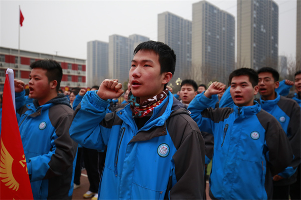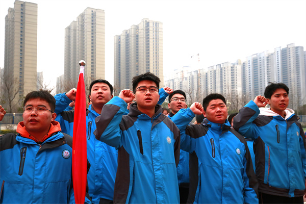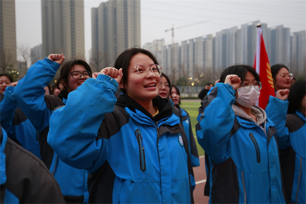 满怀热血,怀揣梦想。全体高三学子举起右拳,语调铿锵,气势高昂,庄严立誓。铿锵的誓言叩击高考大门,这雄心壮志比天高、这嘹亮口号震天响,发出我们奋战百日的最强音!决战一百天,让高考点燃青春的梦想!
