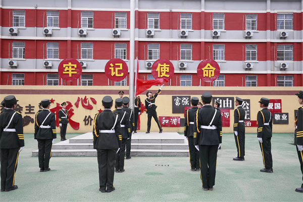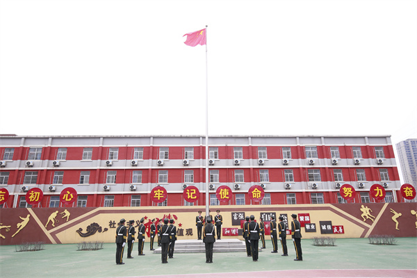 国歌激昂,奏响奋进凯歌,飘扬的五星红旗,点燃的是高三学子的青春梦想;铿锵嘹亮的歌声,奏响的是奋战百日的号角!
