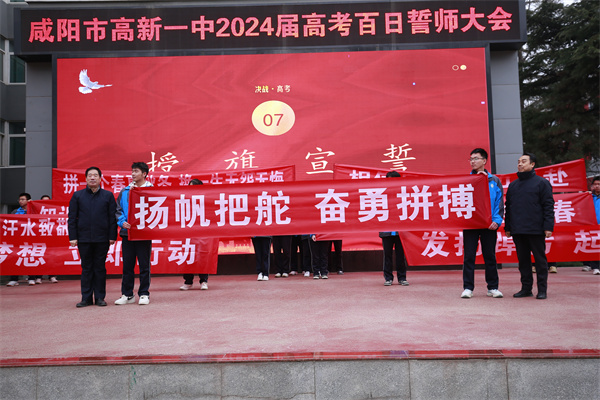 龙马精神启新篇,热辣滚烫逐梦想。为进一步激发高三学子的学习热忱,坚定冲刺高考的必胜信念,2月27日,咸阳市高新一中举行2024届高考百日誓师大会。学校党总支书记、校长于建营、高中部执行校长廖荣及高三年级全体师生、家长代表共赴这场青春盛宴,见证了这一庄严而神圣的时刻。本次大会由高三年级学生主持。