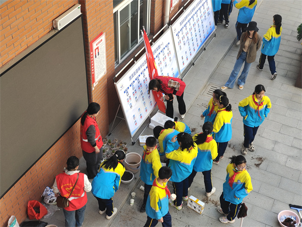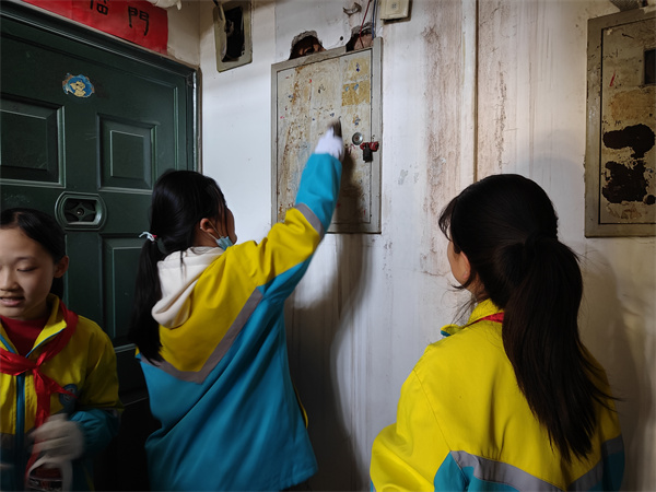 活动开始了,第一小队的“红领巾”志愿者们社区街道清扫工作。他们手持扫帚、簸箕,认真地清扫着社区小广场,每一片纸屑、每个烟头,都被他们捡拾干净。在他们的努力下,广场变得干净整洁,焕然一新。第二小队的队员们走进居民楼道,他们负责擦洗栏杆和清除野广告。队员们用湿布擦拭着栏杆,细心地清理着墙上的野广告,让原本生锈的栏杆焕发出新的光彩,使社区的环境更加整洁美观。