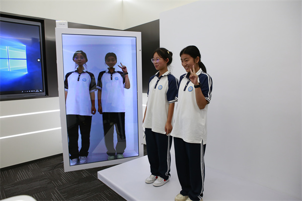 在参观的最后阶段,同学们来到了互动体验厅。这里展示了许多新鲜好玩的高科技产品,如中国目前唯二的3D裸眼笔记本电脑、可以闻到各种味道的气味广告机、智能象棋、真人卡通成像、VR眼镜等。这些新奇的体验让学生们大开眼界,也激发了他们对科技的兴趣和探索欲望。