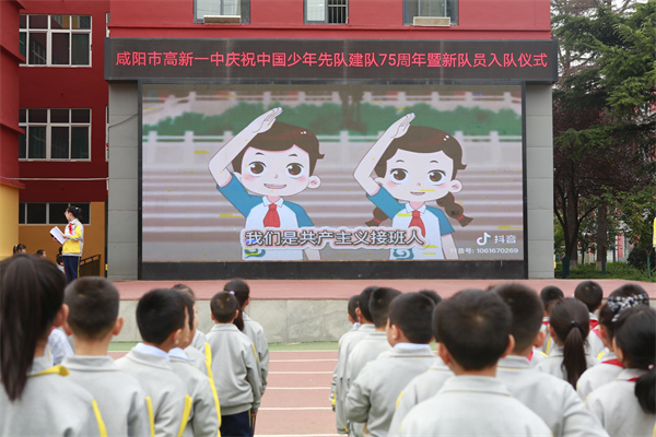 10月11日上午,咸阳市高新一中小学部隆重举行了庆祝中国少年先锋队建队75周年暨新队员入队仪式。不仅回顾了少先队75年的光辉历程,还见证了一批新队员佩戴红领巾、正式加入少先队的重要时刻。
