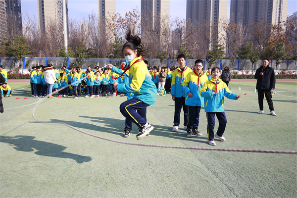 寒冬虽至,校园内却一片欢腾,同学们用飞舞的彩绳点燃激情,以跃动的步伐诠释青春的活力与力量。