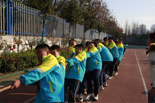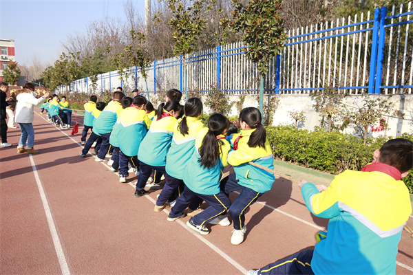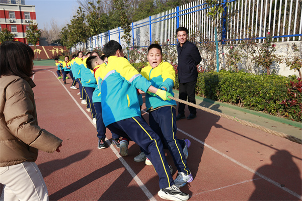 六年级的同学们还进行了一场激动人心的拔河比赛。他们紧握长绳,双脚扎根地面,仿佛每一根神经都在为这场力量与意志的较量而紧绷。在裁判的一声哨响后,双方队伍迅速进入状态,全力以赴地向后拉扯。加油声、呐喊声此起彼伏,响彻云霄。这不仅是一场体力的较量,更是一次意志的比拼,展现了六年级同学们坚韧不拔、勇往直前的精神风貌。