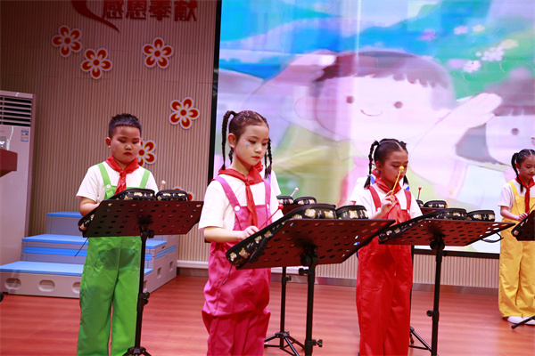 张步老师指导的铝板琴方阵,以金属的清越之声奏响红色旋律,琴槌起落间闪耀着新时代少年的赤子之心。