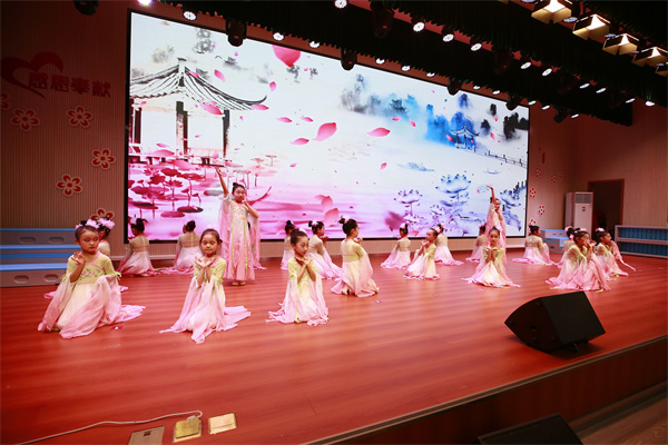 王闻兴老师编排的古典舞,水袖翻飞间再现江南水乡的温婉,孩子们眼波流转尽显东方韵致。