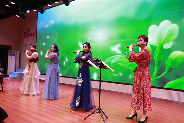 陈圆圆老师将流行歌曲改编为口风琴合奏,轻快的旋律与诙谐的表演引得全场笑声与掌声此起彼伏。