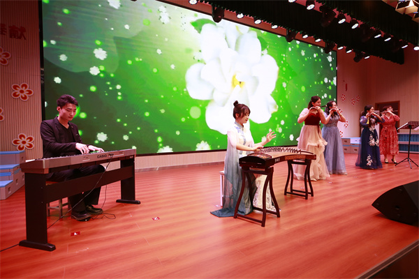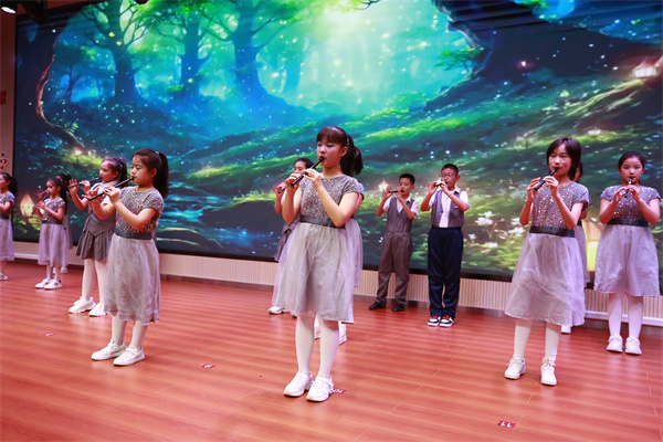 六位音乐老师联袂指导的民乐合奏,古筝的婉转、二胡的悠长、笛子的清亮交织成江南烟雨的诗意画卷。