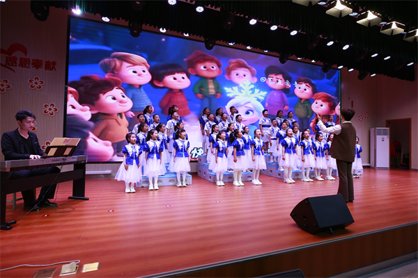 当大屏幕亮起,一张张纯真的笑脸与灵动的身影跃然眼前——学生们手持新年贺卡送上祝福,排练室里挥洒汗水的花絮定格成成长的印记。这场以"童梦新声·乐启华章"为主题的新年音乐会,在暖场视频的温馨氛围中拉开帷幕。