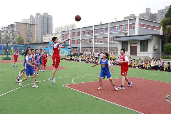 春日的操场,少年们意气风发。近日,咸阳市高新一中小学部五六年级班级篮球赛正式开赛,哨声一响,奔跑、传球、投篮,处处都是青春昂扬的模样。