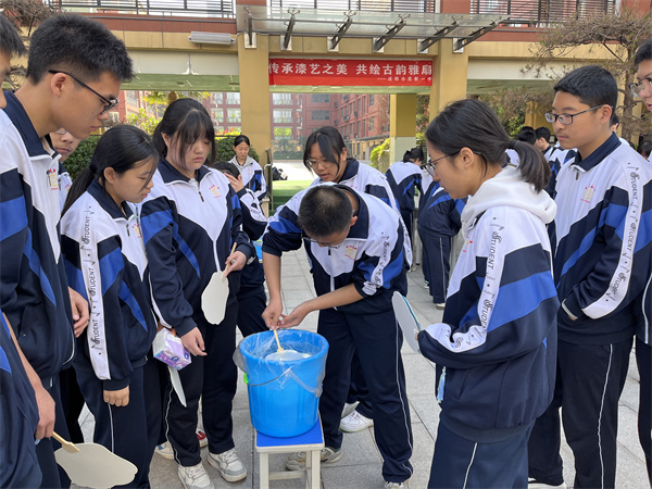 从素白扇面到斑斓成画,师生们在沉浸式体验中感受着非遗技艺的神奇,也在协作互动中拉近距离、增进情谊。大家都觉得,这是一次治愈又有趣的体验,看着空白的扇面慢慢染上色彩,心也跟着静了下来,原来传统文化可以这么温柔又有力量。一柄漆扇,承载着传统文化的厚重底蕴;一次实践,凝聚着师生们的专注与热爱,也让大家在慢下来的时光里,读懂了匠心的意义。