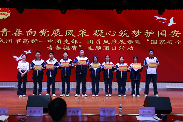 为深入开展全民国家安全教育日宣传教育,充分展现基层团支部建设成果与新时代团员青春风貌,4月16日,由秦都区团委主办的团支部、团员风采展示暨“国家安全 青春挺膺”主题团日活动在咸阳市高新一中顺利举行。各相关单位分管领导及高新一中师生代表等200余人参加活动。本次活动经过前期选拔,共有9个团支部、6名团员脱颖而出,参与现场展示与比拼。