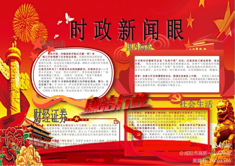 寒假作业是课堂教学的延伸,是学生成长的阶梯。在“双减”政策背景下,咸阳市高新一中高中部常规作业减量提质,创意作业异彩纷呈。电子小报是系列创意作业形式之一,目的是引领学生热爱阅读,关注生活,关心时政,实现教学和生活的联通。