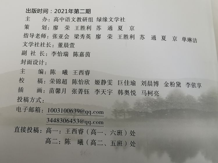 《写在青春边上》——绿缘文学社第一期杂志出炉啦