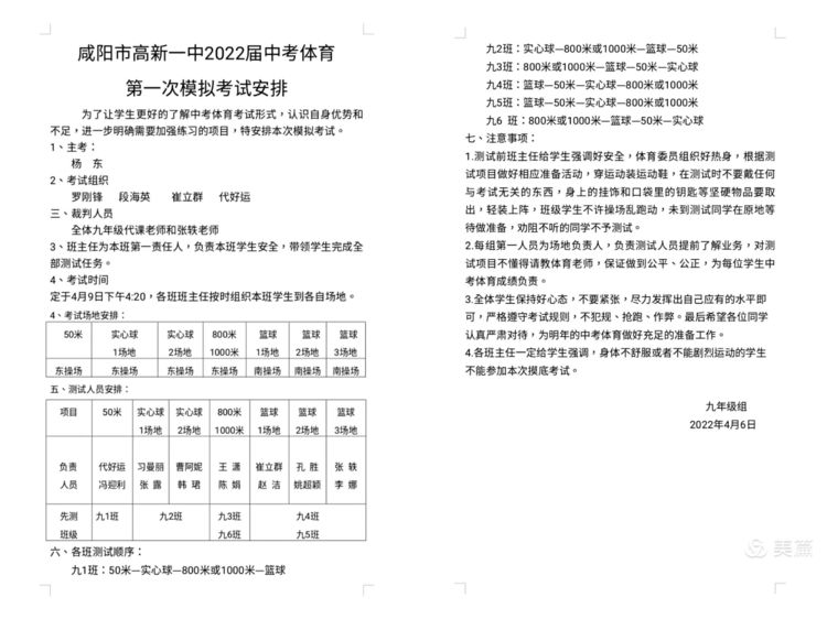 本次体育中考模拟测试严格按照咸阳市体育中考方案标准,考试项目包括:50米、女子800米、男子1000米、篮球、实心球。九年级年级组全体师生精心策划和充分准备。测试期间,学生们全力以赴,用饱满的热情,昂扬的斗志,勇于拼搏的精神投入比赛。老师们一丝不苟,分工合作,认真负责好每一个环节。