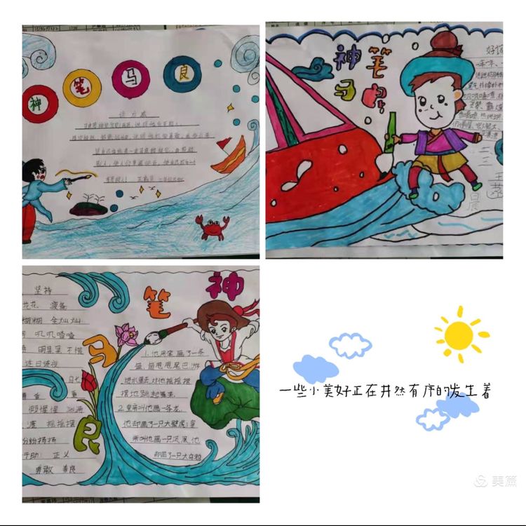 此次绘本创作活动以阅读书《神笔马良》为主题,通过手抄报的形式展示,孩子们利用精细的制作技巧、色彩丰富的颜料、娟秀美观字迹将一张张白纸绘制成一幅幅美妙的图画,每一本绘本都展示了孩子们独有的视野和丰富的精神世界。