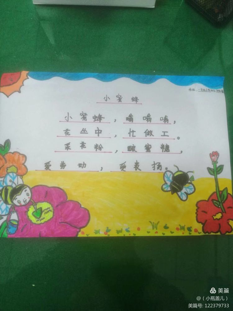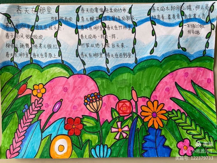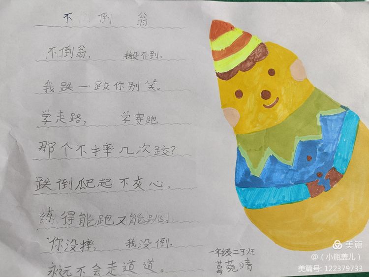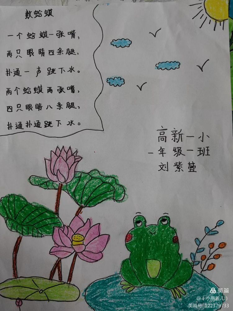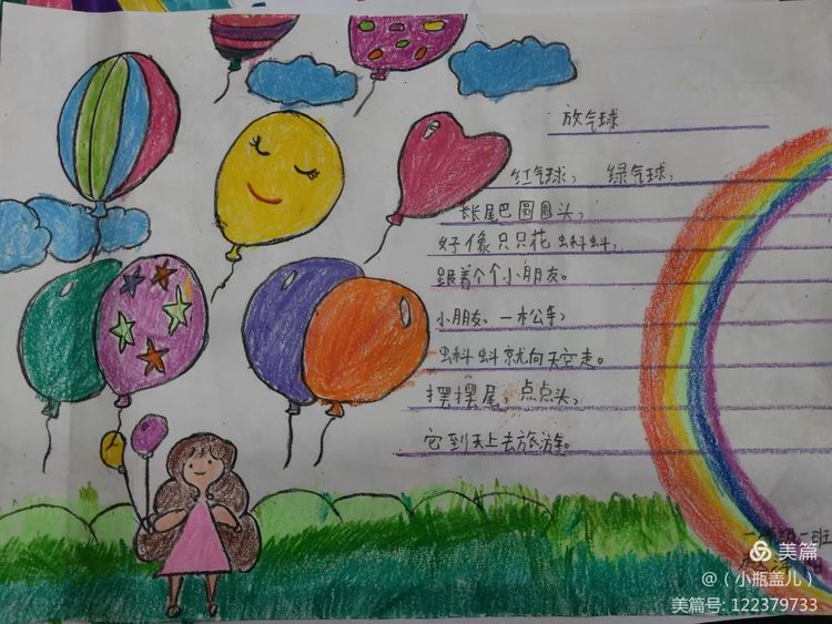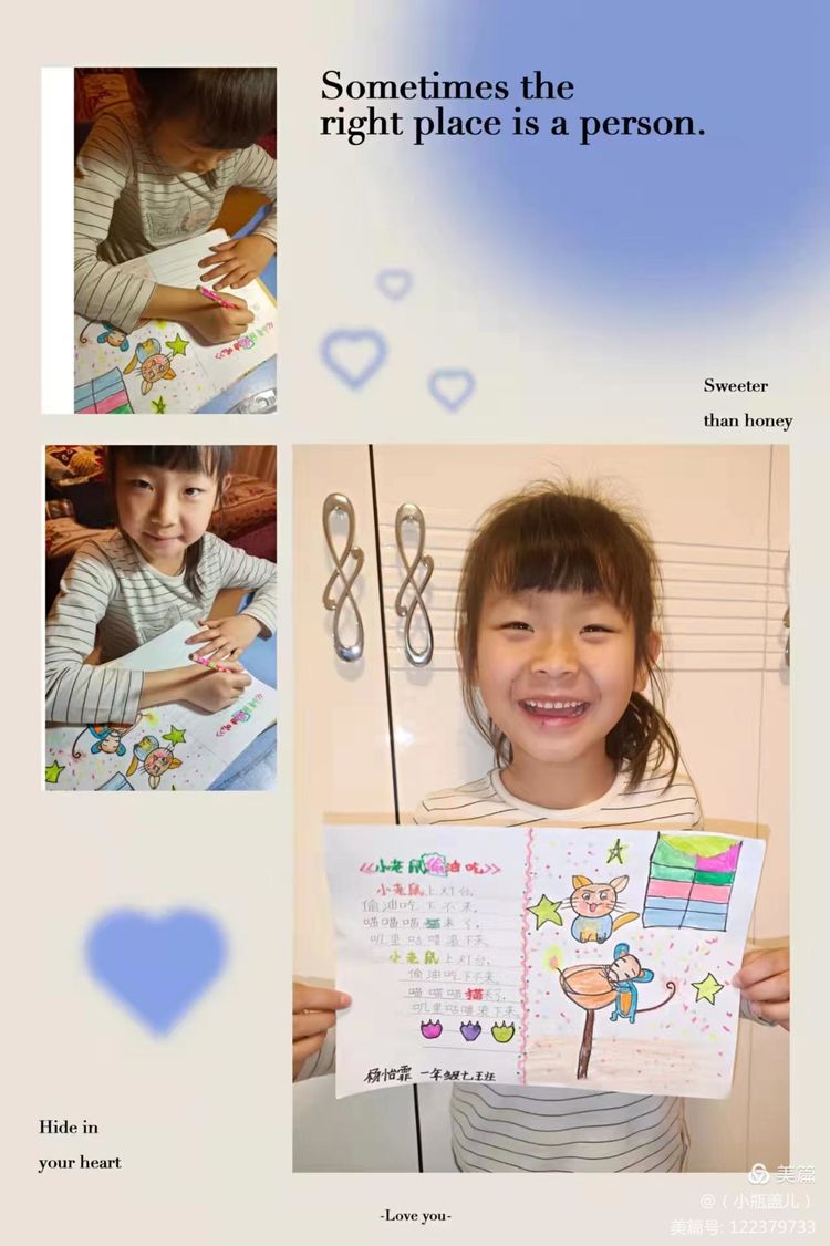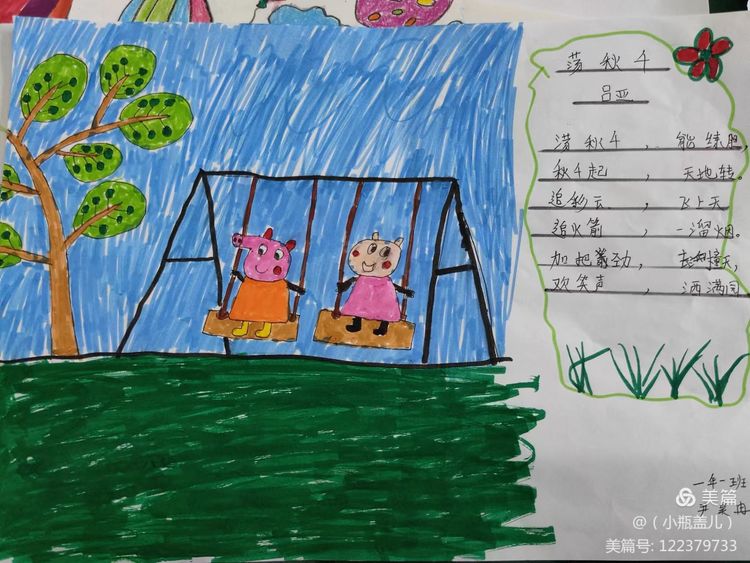 一首优秀的儿歌,不仅能够对孩子们进行文学、艺术上的熏陶,也能够丰盈他们的精神世界,帮助他们树立正确的价值坐标。童谣的题材往往包罗万象,在满足儿童好奇心的同时,亦能让他们从中获得知识经验,感受社会文化,童谣能够传达热爱自然、友好待人、关爱父母、热爱祖国等思想,潜移默化的影响着儿童的思想情操。近期,咸阳市高新一中小学部一年级组围绕阅读读本开展了丰富多彩的实践活动,活动内容包括为儿歌童谣配一幅图画,快乐背诵童谣儿歌并演唱,学习童谣儿歌的手势舞,亲子阅读,课堂检测等等……