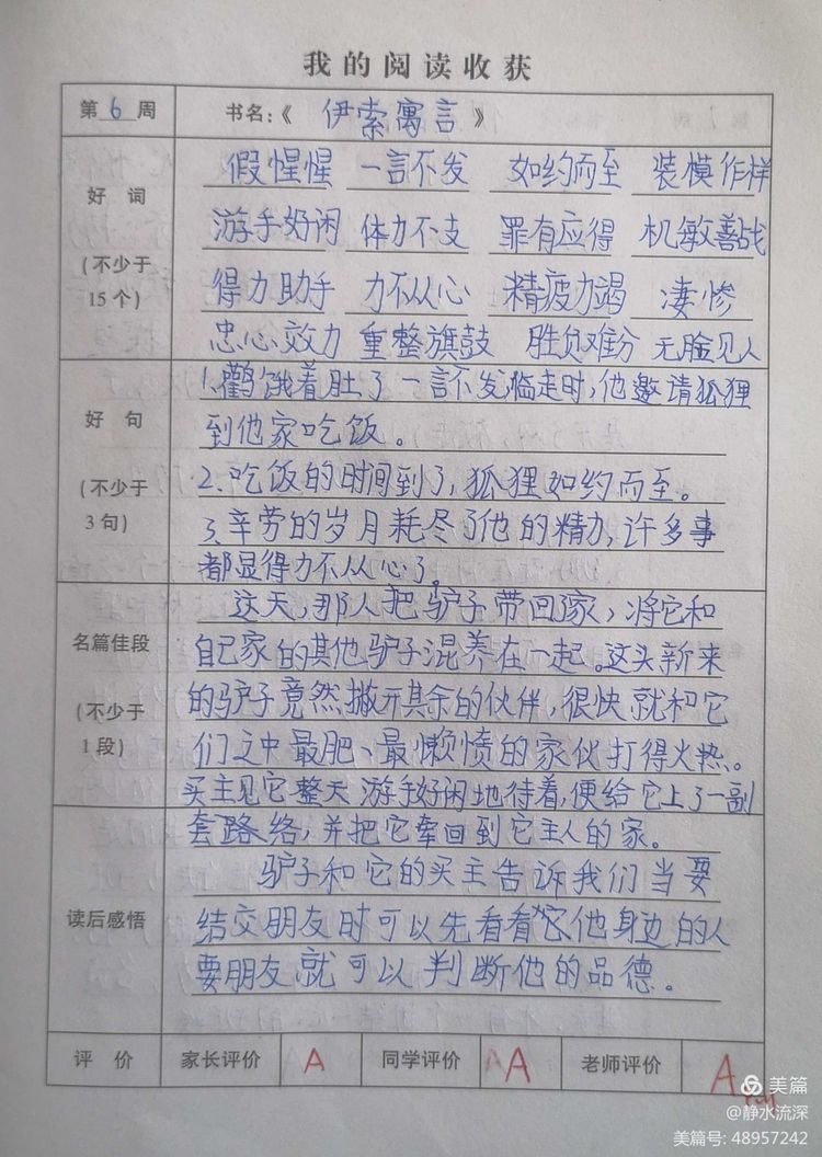 多年来,咸阳市高新一中小学部一直非常重视学生课外阅读的有效延伸,结合教材和“快乐读书吧”,探索出适合不同年龄、不同学段的阅读内容,并在学生内化展示的汇报中进行着积极大胆的实践。通过各种形式的读书,学生走近了经典,对话了人物,享受了乐趣,感悟了人生,都不同程度的提升了语文素养,为语文持续性、外延性学习奠定了基础。本学期三年级的孩子课外阅读了《中国古代寓言故事》《伊索寓言》《克雷洛夫寓言》。通过学习教材中的几篇寓言故事,孩子们意犹未尽,又兴味盎然的根据老师的推荐展开了课外延伸阅读。