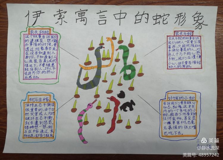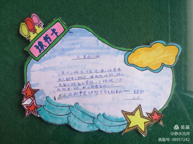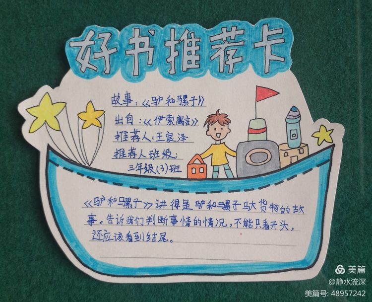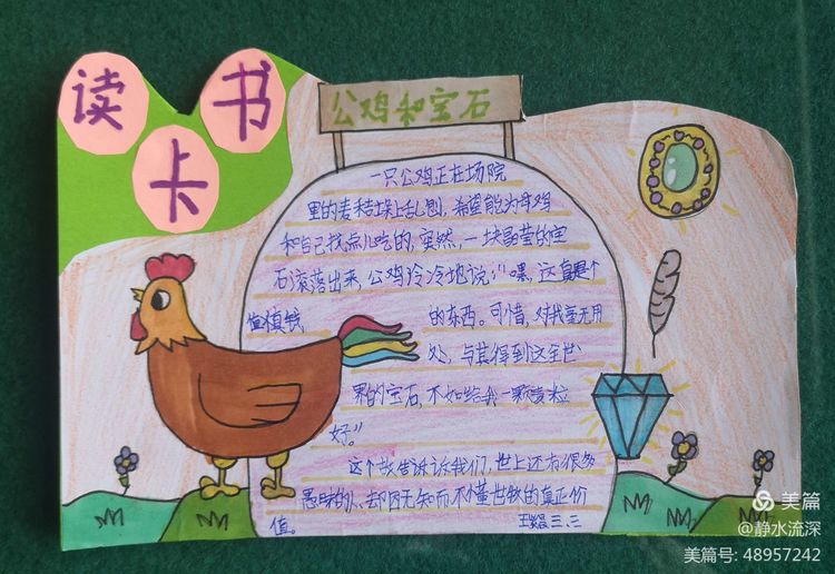 看,孩子们将阅读寓言的收获记录于可爱的读书卡上,大家可以彼此交流,互相欣赏。