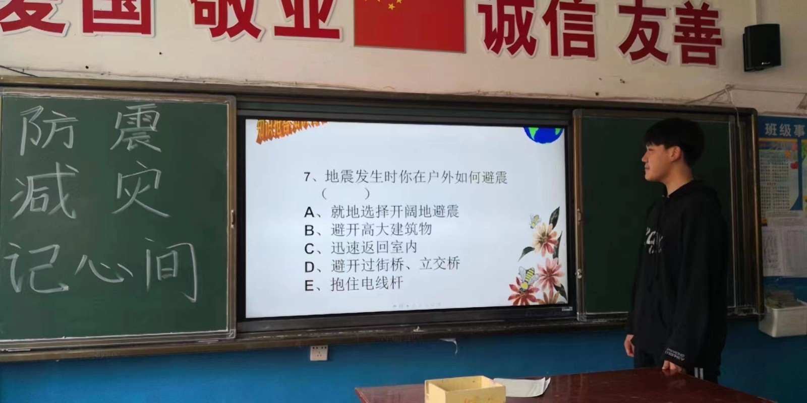 学校组织师生通过观看视频、开展主题班会等多种形式了解地震等自然灾害常识和自救方法,让师生们对各种自然灾害有了认识,并学会简单的自救措施。