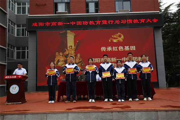 在此次国防教育活动中,2022级涌现出了一批吃苦耐劳,奋发进取,具有榜样作用的优秀学子。咸阳市高新一中工会主席王中社老师宣布优秀学员名单,校领导为获奖学员代表进行颁奖。
