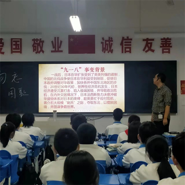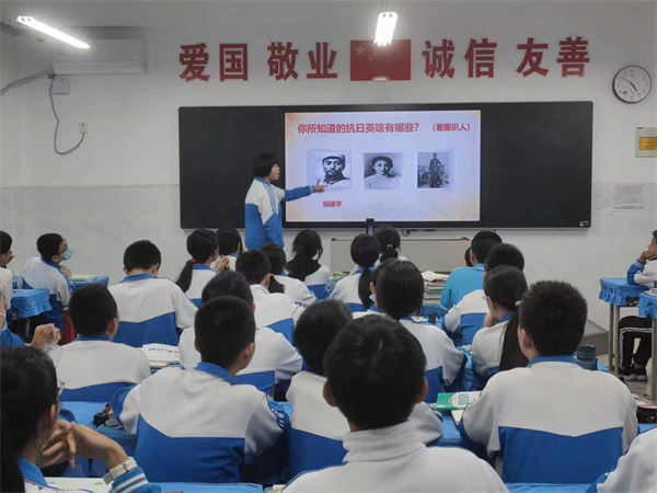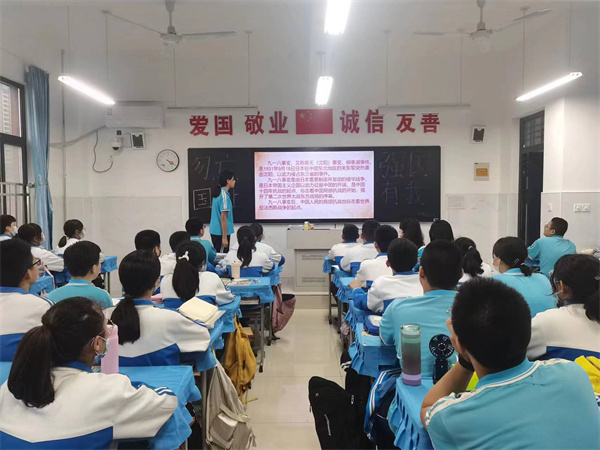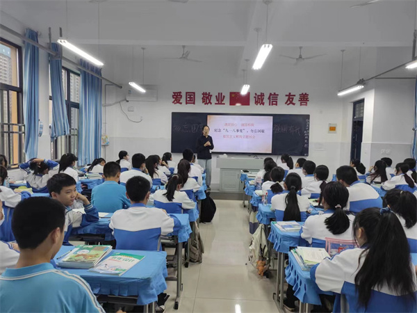 班会课上,老师向学生讲述了“九一八”事变的过程,与学生共同回忆了那段让中国人民悲痛难忘的岁月,教育学生们要铭记历史、勿忘国耻、缅怀先烈、珍爱和平。学生介绍抗日英雄、进行历史知识抢答,更深入地了解历史。