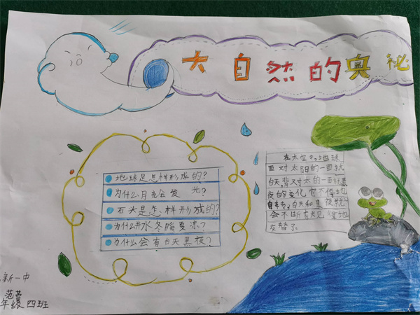 我想,在一场春雨里;在一缕夏阳下;在一片秋叶后;在一堆雪花中。唱着歌,去赞美自然。你看就连我们二年级可爱的孩子们也被神奇的大自然所吸引,他们用他们独特的形式向我们展现了大自然的美丽与奥秘……