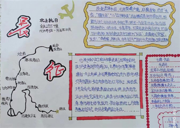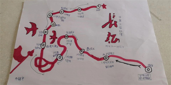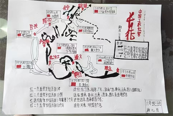 孩子们认真的绘制着长征路线图,仿佛触摸着历史的脉搏,他们渐渐明白了今天的幸福生活来之不易,每一位革命先辈的付出与牺牲,成就了今天我们的幸福生活。
