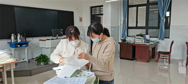 检查中,龚主任告诉老师们:榜样就在身边,这些优秀作业值得表扬,值得大家学习!各学科都要凝心聚力,充分利用好常态化“研课 磨课”时间教研,研出既符合年级段特点,又接地气、创新的作业,这样才能真正地践行“减负增效”。