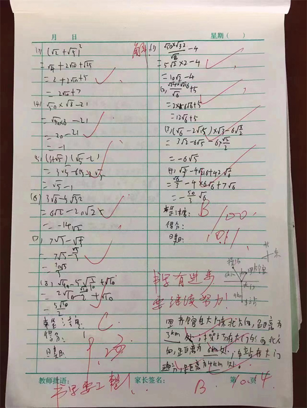 作业是师生之间的交流和碰撞!老师们精心分层设计习题,细心批改,用心激发学生,耐心叙写批语,学生们认真对待、收获满满。通过检查反馈,能促进教师们互相借鉴学习,实现智慧共享,落实好每一项教学常规,踏实做好每一项教学工作,就能收获累累的硕果。