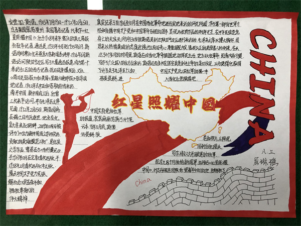 《红星照耀中国》手抄报作品展示,以文字辅以绘画的形式,展现红色印迹,书写革命精神。