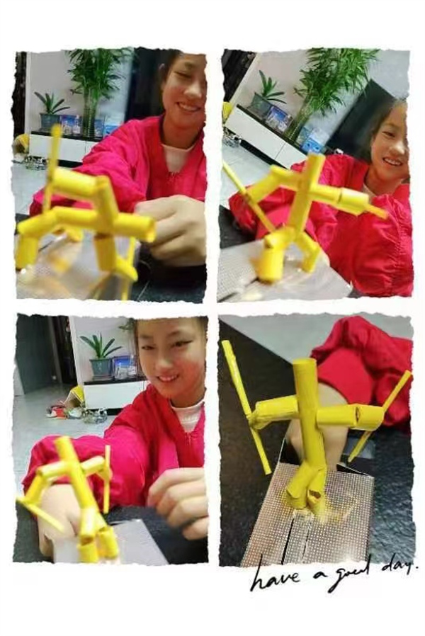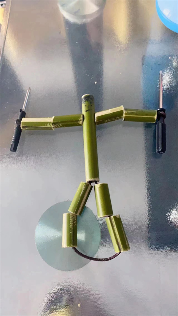 瞧,孩子们制作的竹节人。材质各不相同,造型各异。有的威风凛凛,傲然挺立;有的两军对峙,毫不示弱;还有的手持大刀,仿佛立刻要开始一场战争……