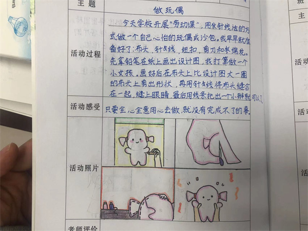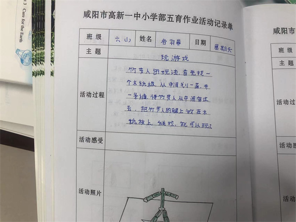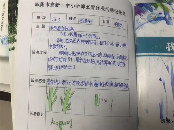 孩子们以日记、习作、五育绘本等多种形式记录下来了竹节人的制作过程和玩耍体验……