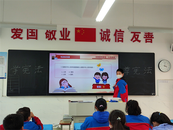 知识作伴显蓬勃朝气,宪法护航铸精彩人生。为了深入学习宣传和贯彻宪法的相关精神,不断增强学生的宪法意识,近日,咸阳市高新一中初中部开展宪法宣传周主题班会活动。