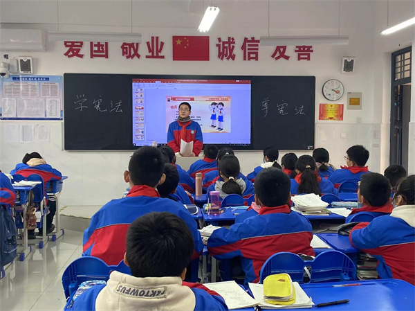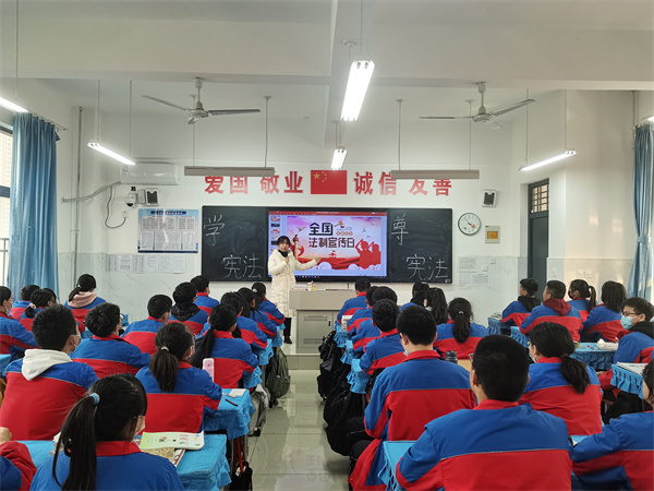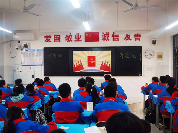各班主任从什么是法律、什么是宪法以及宪法的地位、公民的基本权利和义务等几个方面对全体学生进行了详细的讲解,深入浅出,层层递进,结合通俗易懂的文字,有趣形象的图片和具体案例,使学生进一步了解宪法,尊崇宪法,从而弘扬宪法精神,维护宪法权威。