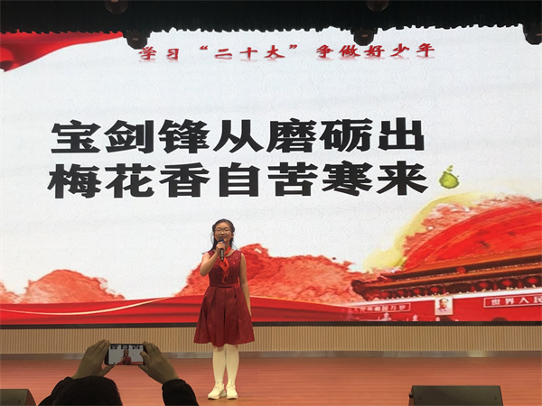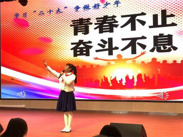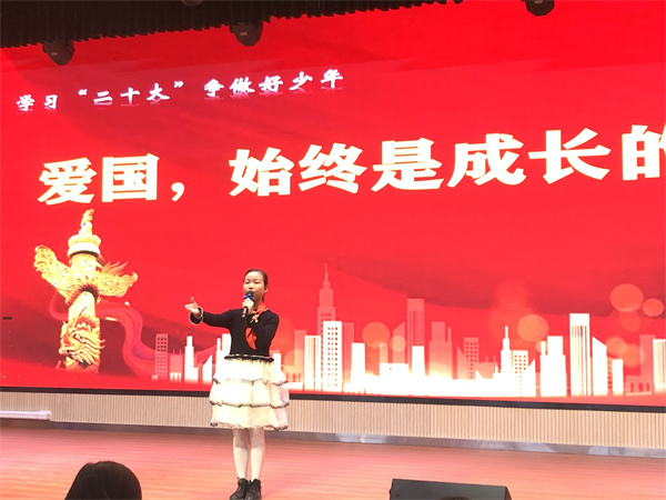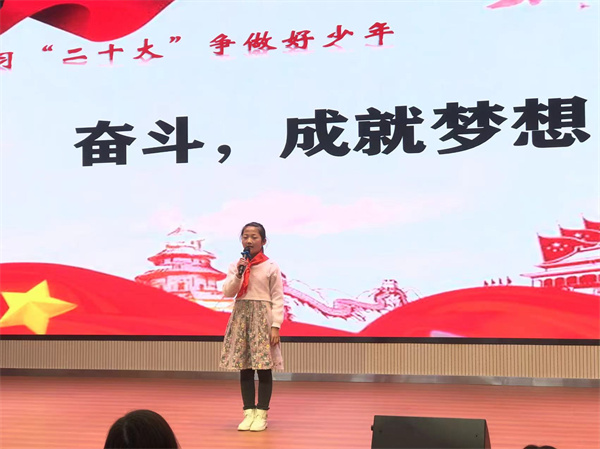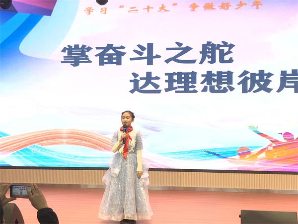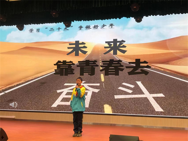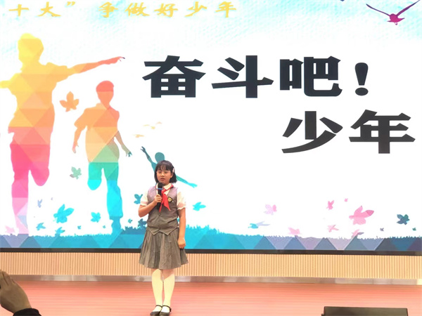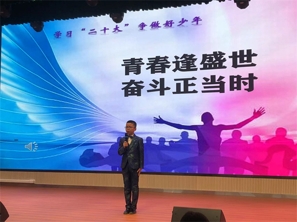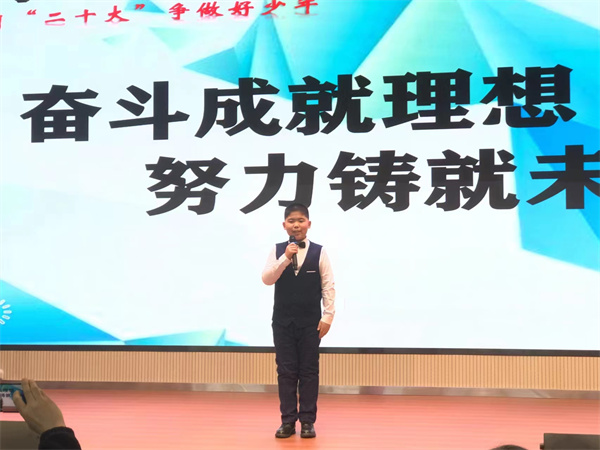 比赛中,参赛选手们紧紧围绕“奋斗成就未来”这一演讲主题,结合党的故事、英雄的故事,时代楷模的故事等深情讲述,那一声声"请党放心,强国有我"的誓言铿锵有力,那一句句“少年强则国强”的呼号掷地有声、铿锵有力,每一句言语、每一瞬表情都表达了当代少年儿童对祖国浓浓爱国情、拳拳爱国心。他们将理想深深的植入队员们的脑海,用热情讴歌党的光辉历程,赢得现场阵阵掌声。